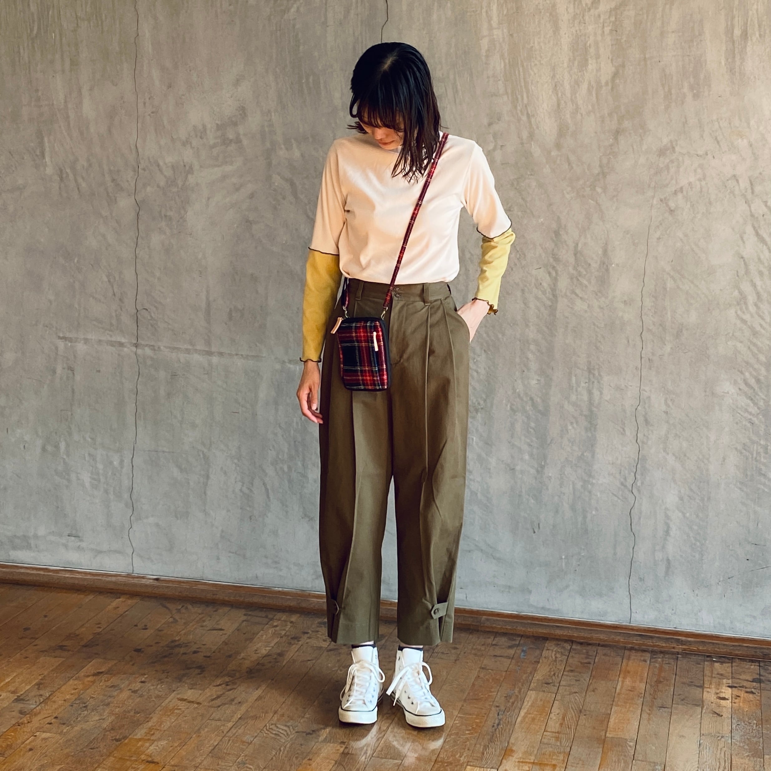 この秋冬限定のウール素材×タータンチェックのブックショルダーは暗くなりがちな装いを華やかにしてくれます。アンティークゴールドの金具もポイントです。